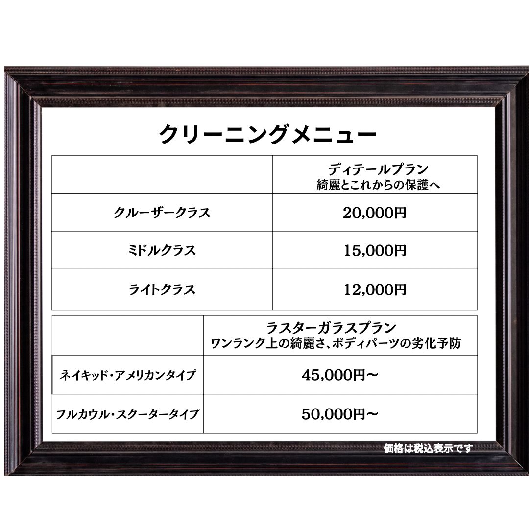 汚れ方や傷み方は、年式や走り方、走る場所によって一台一台異なりますのでバイクの状態を確認し最適なクリーニングをご提供させて頂きます