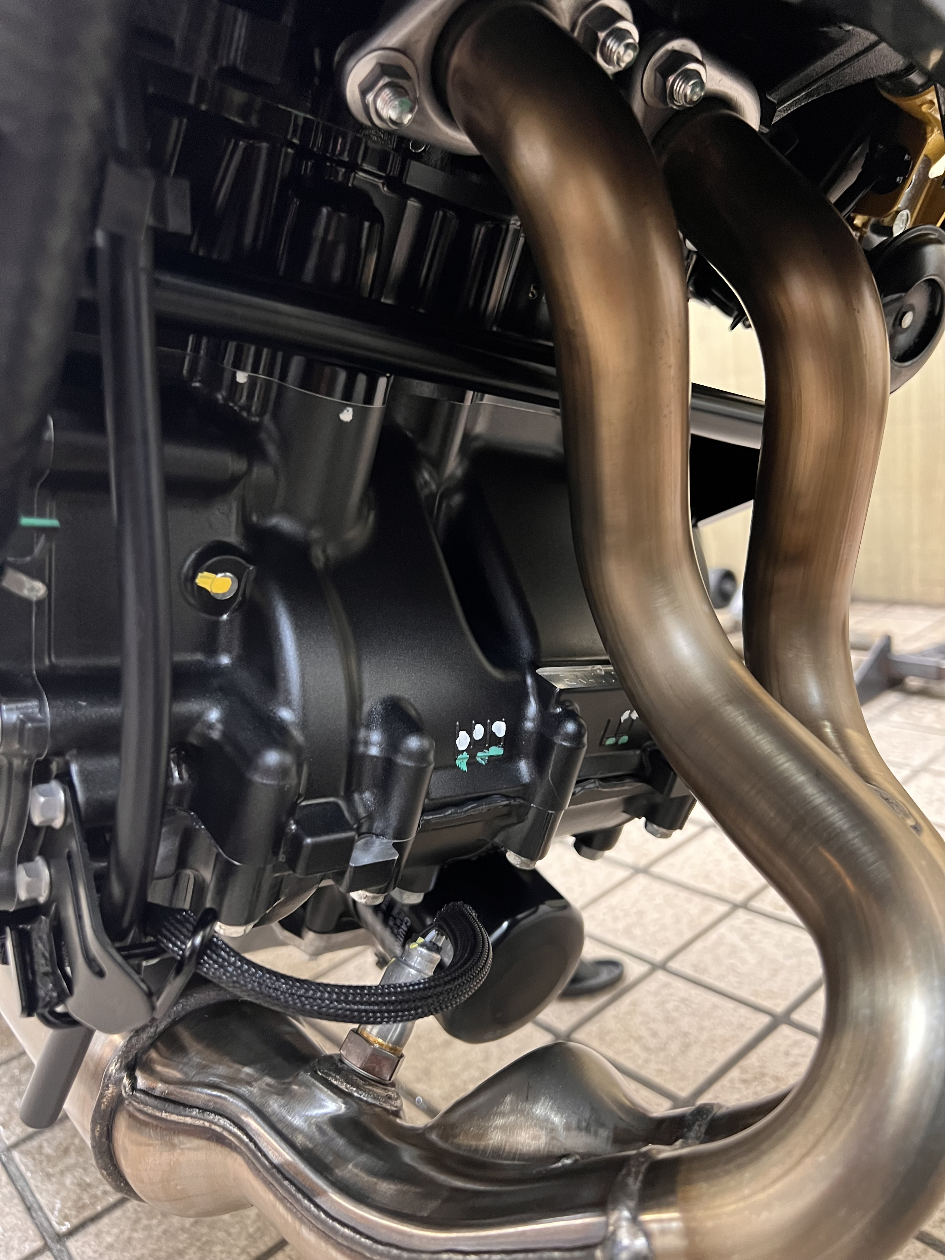 ②エンジンやマフラーには高温パーツ専用の『耐熱コート』を使用します、撥水性が高く熱による汚れのこびり付きを防ぎ塗装の劣化防止やサビを防ぐ効果があります