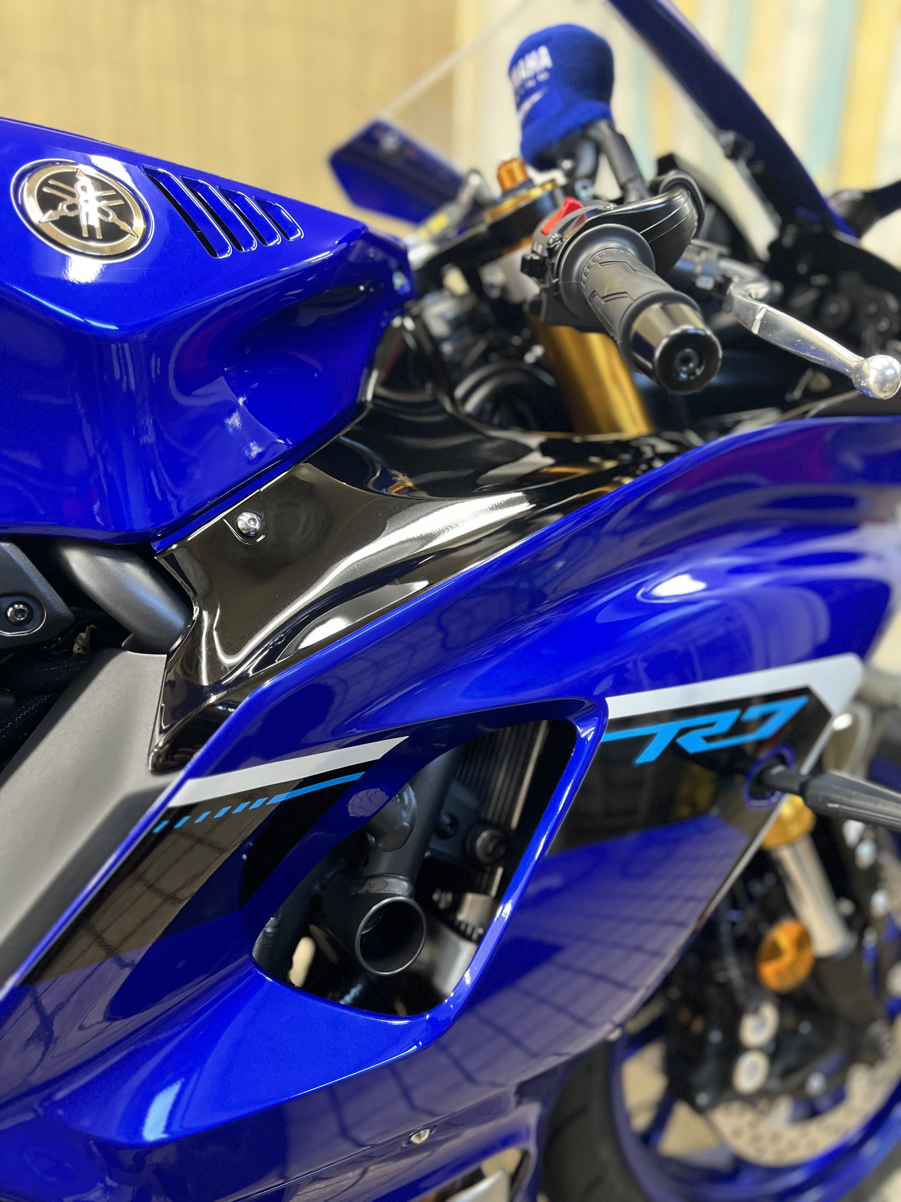 ①タンクや外装はもちろんサスペンションやホイールその他、車体の細部まで『ガラス系ポリマーコーティング』を塗布する事で艶をしっかり持たせて保護していきます、また撥水性も高く汚れの付着やサビ防止に役立ちます